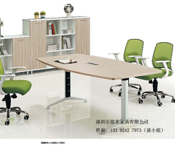 辦公會議桌的材質:飾面均采用優質環保板為基材,2mm特定封邊,防火,耐磨,防污,硬度高.表面啞光效果持久,強度高,剛性好,不變形,比重合理,所有板材均為經防蟲防腐化學處理.